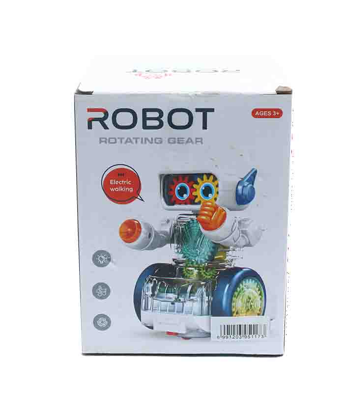 Bring excitement to playtime with the Robot with Rotating Gear! Featuring flashing lights, mechanical movements, and a futuristic design, this toy captivates kids? attention. Its gear-driven motion sparks curiosity about mechanics, while the vibrant colors and interactive functions make it a fun, educational, and engaging companion for little explorers.
