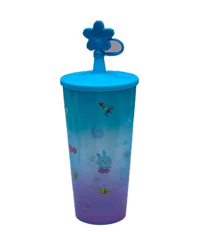 Make every sip magical with the Blue and Purple Space Cup with Bunny-Star Topper. This BPA-free straw cup features a charming celestial design and secure lid perfect for kids? daily drinks.