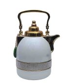 Crafted with double-wall insulation and adorned with gold detailing and gem-like accents, this flask maintains beverage temperature for hours. The pearl-white body complements its luxurious design, while the leak-proof lid and ergonomic handle ensure comfort and convenience. Perfect for elegant gatherings or gifting, it combines grace and function seamlessly.
